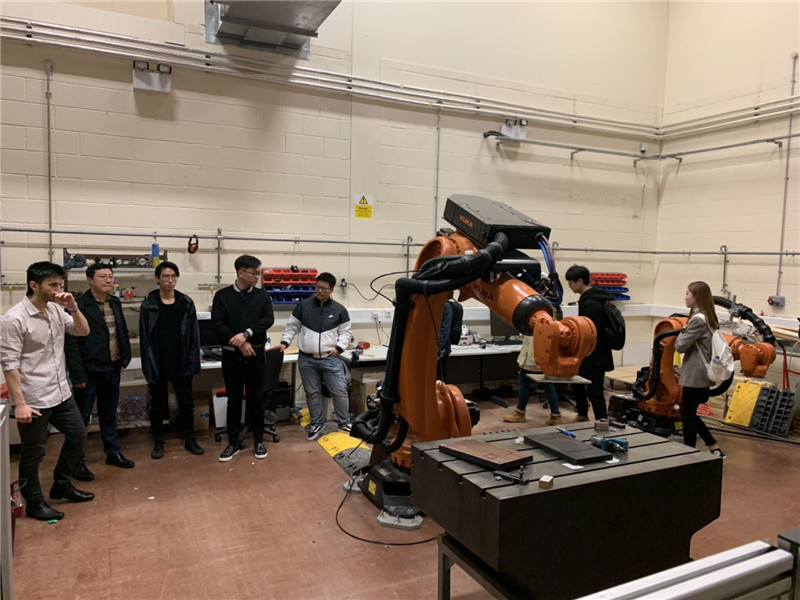 进行交流访学。在索尔福德大学访问期间,来自索尔福德大学自动系统和先进机器人研究中心的老师Theo Theodoridis为大家介绍了四种机器人,其分别是进行铣槽工作的库卡机械臂、基于气动肌肉的仿生机械臂、基于人工智能的ROS机器人以及帮助行动不便的老人的助老机器人。老师介绍道每个机器人各司其职,根据需求集成不同的产品,这样将大大促进机器人的产业化发展。最后,老师还为我们介绍了一间智能家居房间,这间“神奇”的房间看着普通,实际处处都是智能机械化!团队成员们简单了解到了仿生机械的研究原理,并且被其应用深深震撼。
