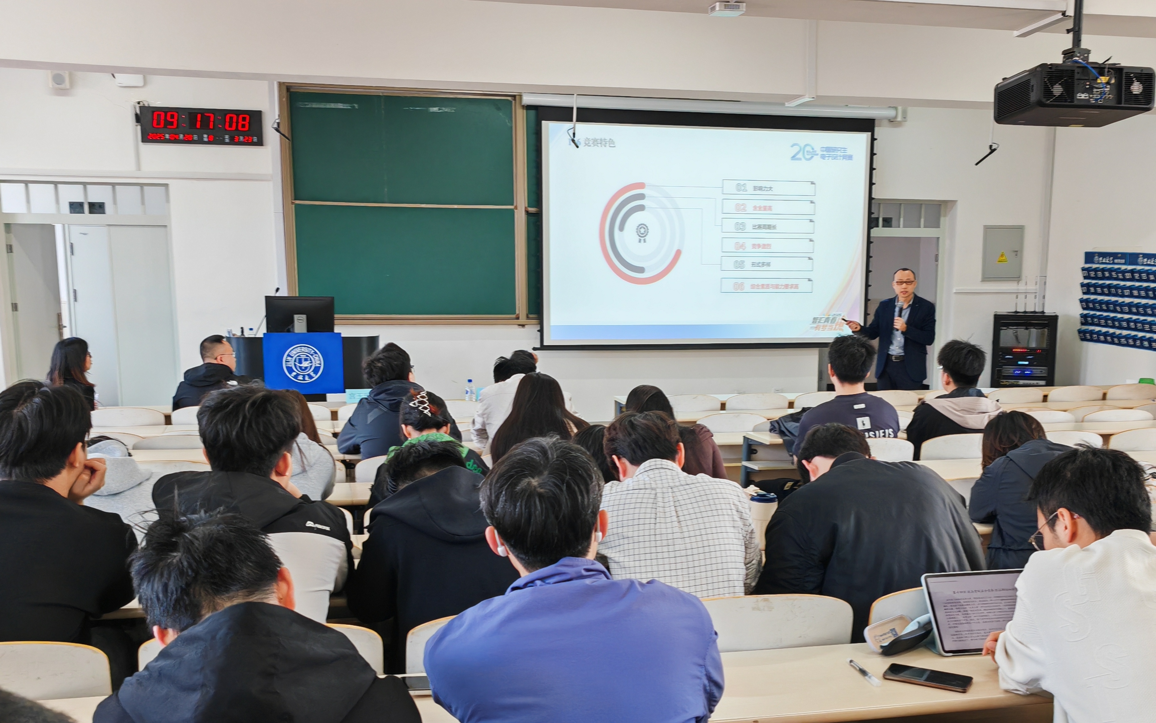 宫玉琳副院长结合自身丰富的指导经验,围绕竞赛作品的特点、选题方向、技术路线等方面进行了深入浅出的讲解,帮助同学们厘清备赛思路,掌握实战技巧。毕长春老师则从行业角度出发,分享了电子设计在实际应用中的典型案例,并鼓励同学们将专业知识与产业需求紧密结合,力争在竞赛中做出有创意、有价值的项目成果。