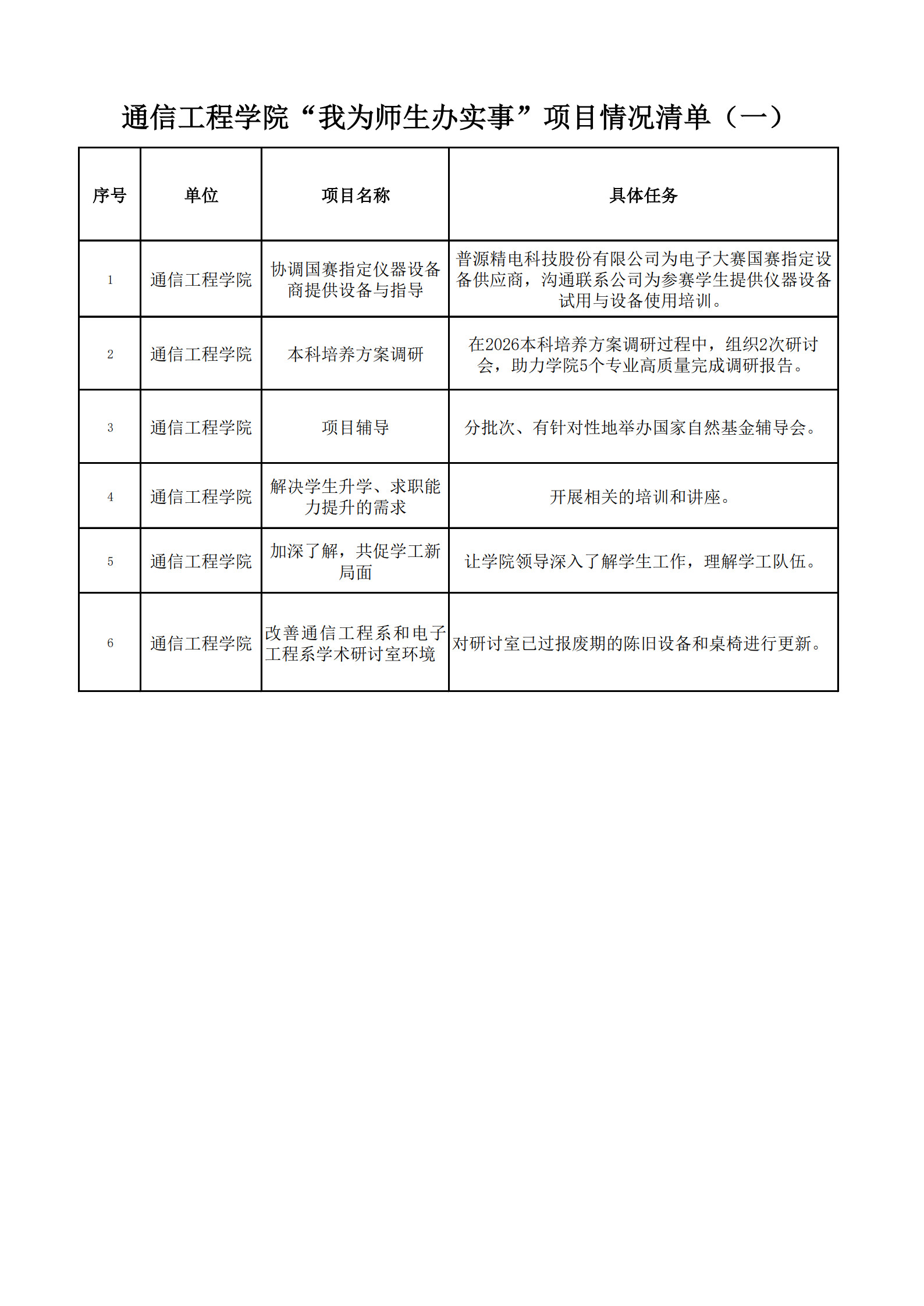 通信工程香港六合彩开奖结果 “我为师生办实事”项目情况清单